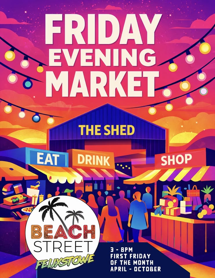 The Friday Evening Market at Beach Street Felixstowe brings a vibrant monthly street market to the town’s unique container venue. Held on the first Friday of each month from April to October, 3pm–8pm, the space around The Shed comes alive with artisan traders, street food, local produce and independent makers.